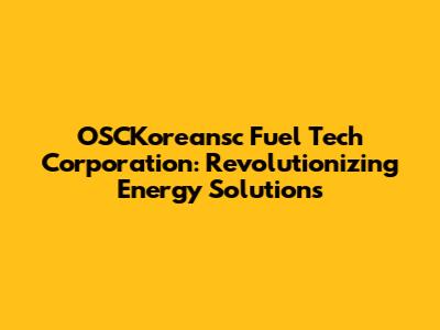 OSCKoreansc Fuel Tech: Revolutionizing Energy Solutions