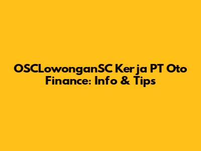 OSCLowonganSC Kerja PT Oto Finance: Info & Tips
