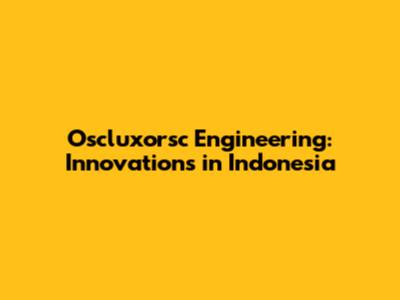 Oscluxorsc Engineering: Innovations In Indonesia