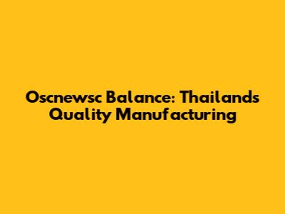 Oscnewsc Balance: Thailand's Quality Manufacturing