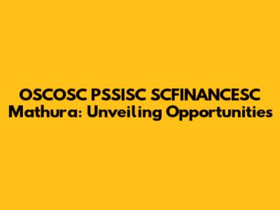 OSCOSC, PSSISC, SCFINANCESC: Opportunities In Mathura