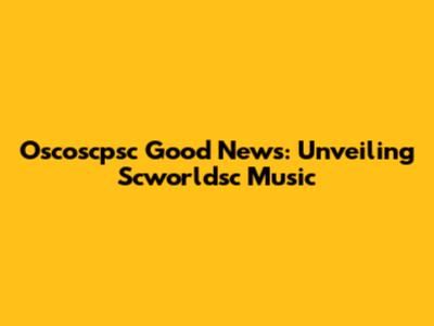 Oscoscpsc Good News: Unveiling Scworldsc Music