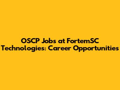 OSCP Jobs At FortemSC Technologies: Career Opportunities