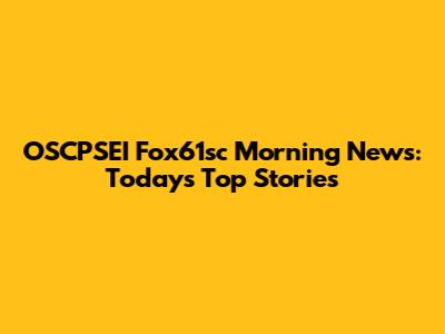 OSCPSEI Fox61sc Morning News: Today's Top Stories