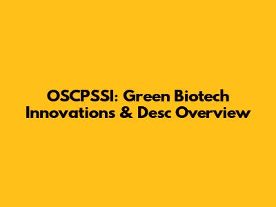 OSCPSSI: Green Biotech Innovations & Desc Overview