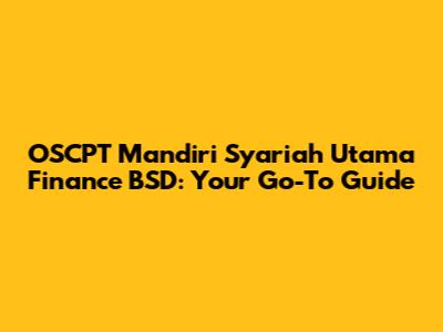 Hey guys! Looking for info on OSCPT Mandiri Syariah Utama Finance in BSD? You've landed in the right spot. This article will break down everything you need to know in a super easy-to-understand way. We’re diving into what OSCPT is all about, what Mandiri Syariah Utama Finance does, and how it all connects in the bustling area of BSD.