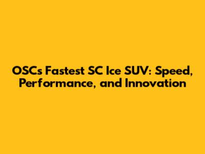 OSC's Fastest SC Ice SUV: Speed, Performance, And Innovation