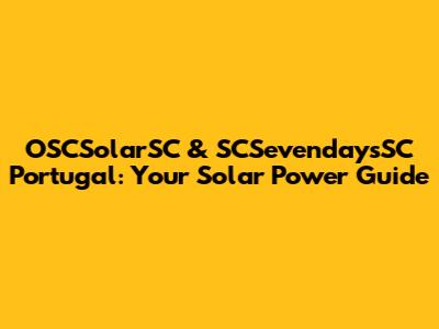 OSCSolarSC & SCSevendaysSC Portugal: Your Solar Power Guide
