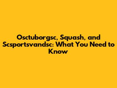 Osctuborgsc, Squash, And Scsportsvandsc: What You Need To Know