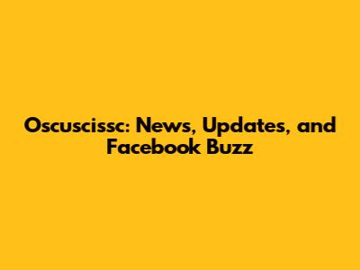 Oscuscissc: News, Updates, And Facebook Buzz
