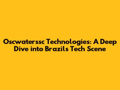 Oscwaterssc Technologies: A Deep Dive Into Brazil's Tech Scene