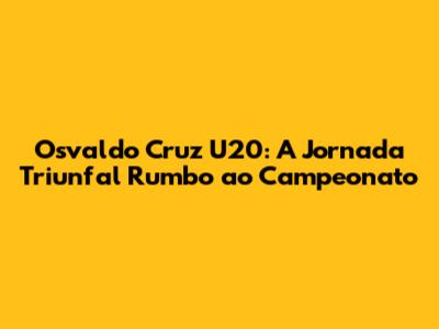 Osvaldo Cruz U20: Campeão Imbatível E Conquistando Corações
