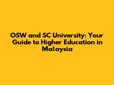 OSW And SC University: Your Guide To Higher Education In Malaysia