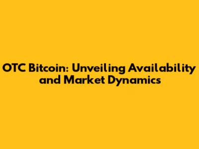 OTC Bitcoin: Unveiling Availability And Market Dynamics