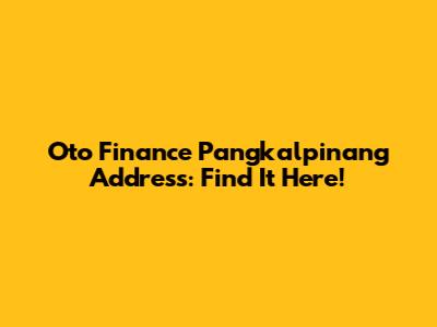Oto Finance Pangkalpinang Address: Find It Here!