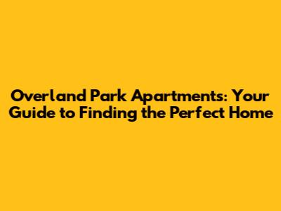Overland Park Apartments: Your Guide To Finding The Perfect Home