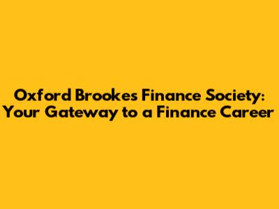 Oxford Brookes Finance Society: Your Gateway To A Finance Career