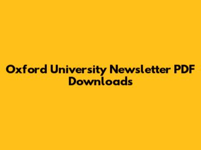 Oxford University Newsletter PDF Downloads