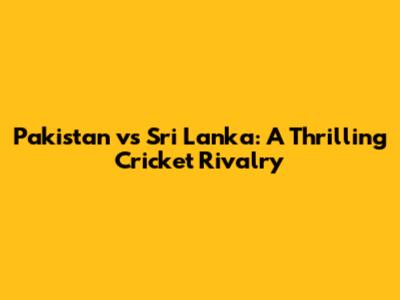 Pakistan Vs Sri Lanka: A Thrilling Cricket Rivalry