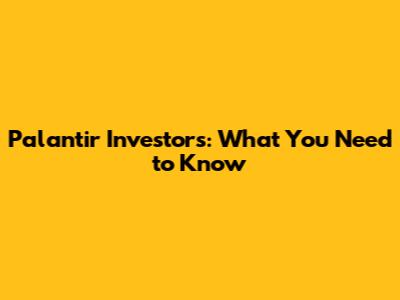 Palantir Investors: What You Need To Know