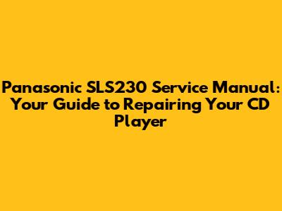 Hey there, fellow vintage audio enthusiasts! Are you looking to breathe new life into your beloved Panasonic SLS230 portable CD player? Then you've come to the right place. This article is your go-to resource for finding the Panasonic SLS230 service manual, a crucial document for anyone attempting repairs or maintenance on this classic device. We'll explore why a service manual is so important, what it contains, and where you can find one. So, let's dive in and get your SLS230 back in top shape!