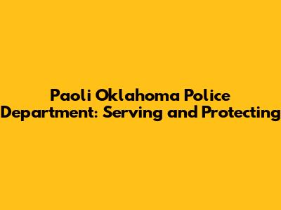Paoli, OK Police Department: Your Community's Protectors