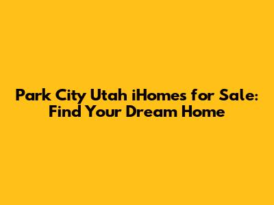 Park City Utah IHomes For Sale: Find Your Dream Home