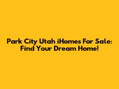 Park City Utah IHomes For Sale: Find Your Dream Home!