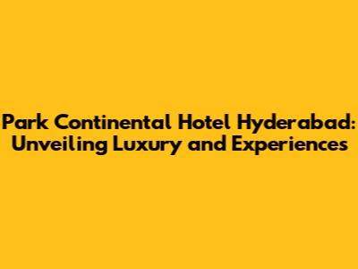 Park Continental Hyderabad: Your Stay Guide