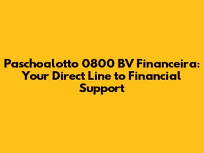 Paschoalotto 0800 BV Financeira: Your Direct Line to Financial Support
