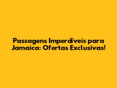 Passagens Imperdíveis Para Jamaica: Ofertas Exclusivas!
