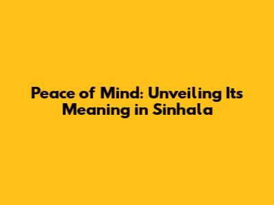 Peace Of Mind: Unveiling Its Meaning In Sinhala