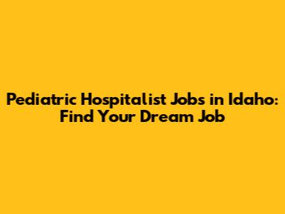 Pediatric Hospitalist Jobs In Idaho: Find Your Dream Job