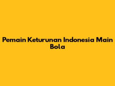 Pemain Keturunan Indonesia Main Bola