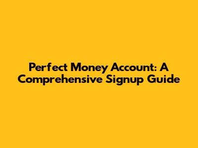 Perfect Money Account: A Comprehensive Signup Guide