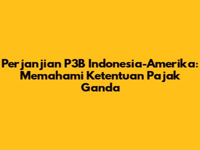 Guys, pernah dengar soal Perjanjian P3B Indonesia-Amerika? Nah, ini penting banget lho buat kalian yang punya urusan bisnis atau investasi antara Indonesia dan Amerika Serikat. Perjanjian ini, yang sering juga disebut Tax Treaty atau Double Taxation Agreement (DTA), punya peran krusial dalam mengatur perpajakan agar nggak ada beban pajak ganda yang memberatkan. Bayangin aja, kalau dua negara sama-sama narik pajak dari penghasilan yang sama, bisa-bisa bisnis jadi nggak untung dong? Nah, P3B ini hadir buat mencegah hal itu terjadi. Artikel ini bakal ngajak kalian kupas tuntas soal perjanjian ini, mulai dari apa sih tujuannya, siapa aja yang diuntungkan, sampai poin-poin penting yang perlu diperhatikan. Jadi, siap-siap ya, kita bakal selami dunia perpajakan internasional yang kadang bikin pusing tapi sebenarnya penting banget buat dipahami.
