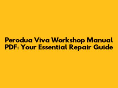 Perodua Viva Workshop Manual PDF: Your Repair Guide