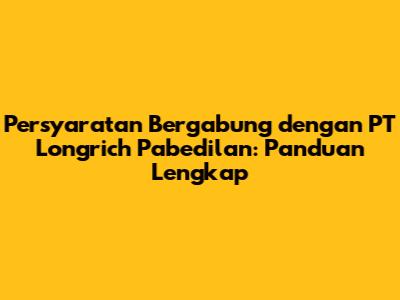 Persyaratan Bergabung Dengan PT Longrich Pabedilan: Panduan Lengkap