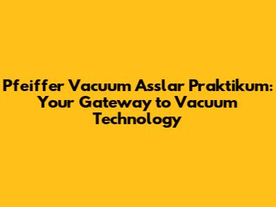 Pfeiffer Vacuum Asslar Praktikum: Your Gateway To Vacuum Technology