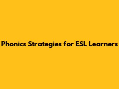 Phonics Strategies For ESL Learners