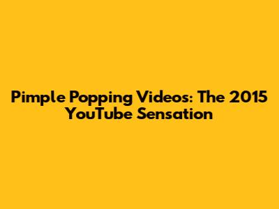 Pimple Popping Videos: The 2015 YouTube Sensation
