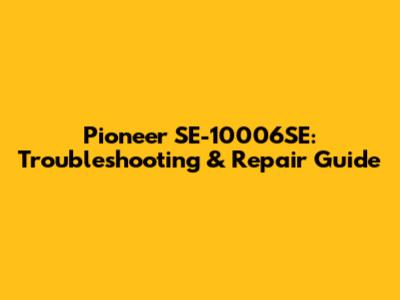 Pioneer SE-10006SE: Troubleshooting & Repair Tips