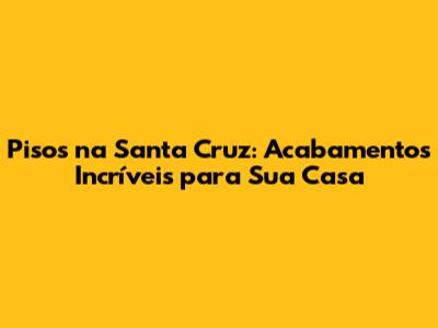 Pisos Na Santa Cruz: Acabamentos Incríveis Para Sua Casa