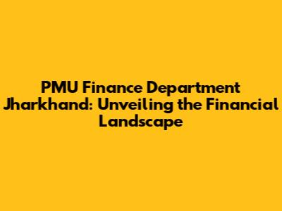 PMU Finance Department In Jharkhand: A Deep Dive