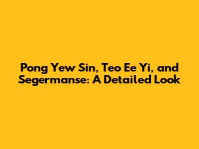 Pong Yew Sin, Teo Ee Yi, And Segermanse: A Detailed Look