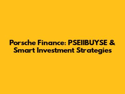Porsche Finance: PSEIIBUYSE & Smart Investment Strategies