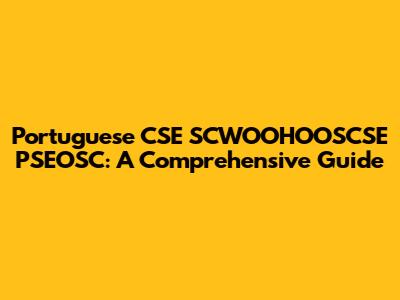 Portuguese CSE SCWOOHOOSCSE PSEOSC: A Comprehensive Guide