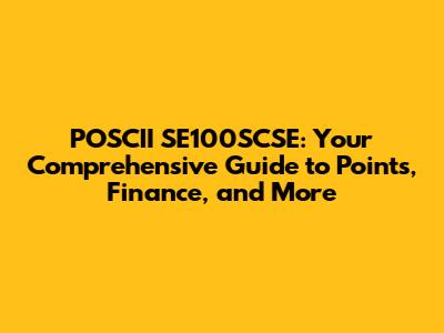 POSCII SE100SCSE: Points, Finance, And Everything You Need To Know