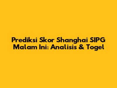 Prediksi Skor Shanghai SIPG Malam Ini: Analisis & Togel