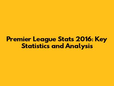 Premier League Stats 2016: Key Statistics And Analysis